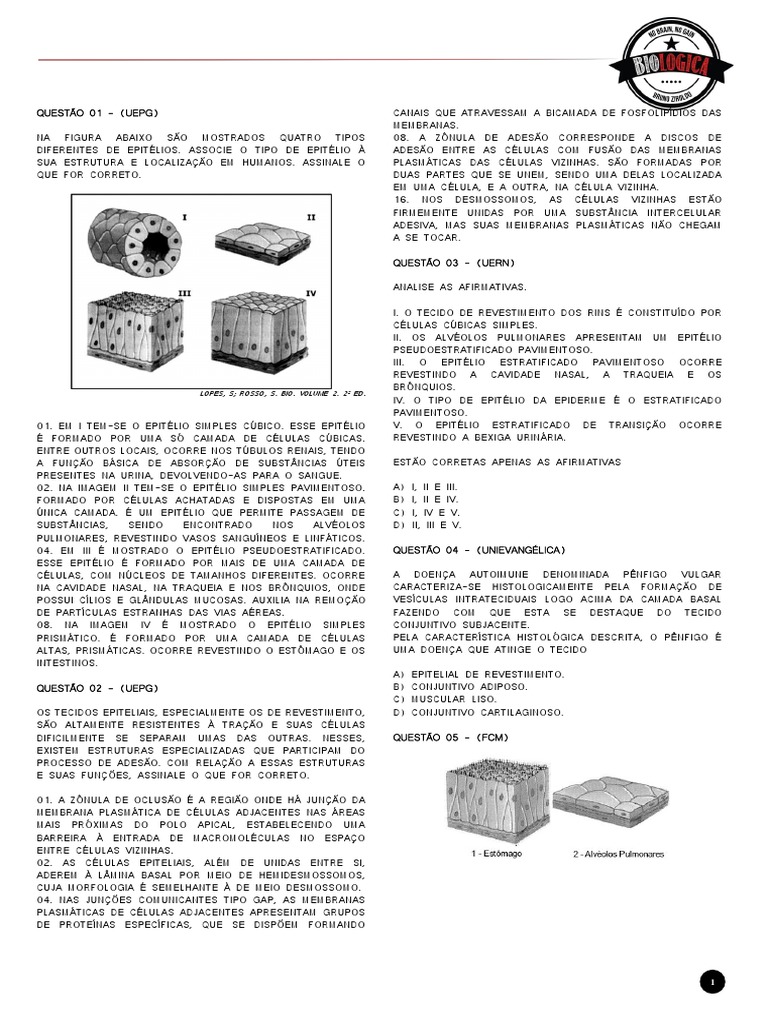 Histologia Tecido Epitelial Gabarito Enfermagem 2